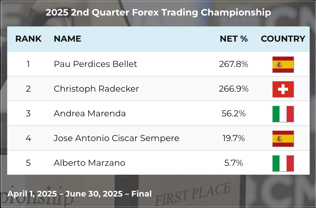 +266.9% in 90 days — 2nd place, World Cup Trading Championship (Forex), 2025