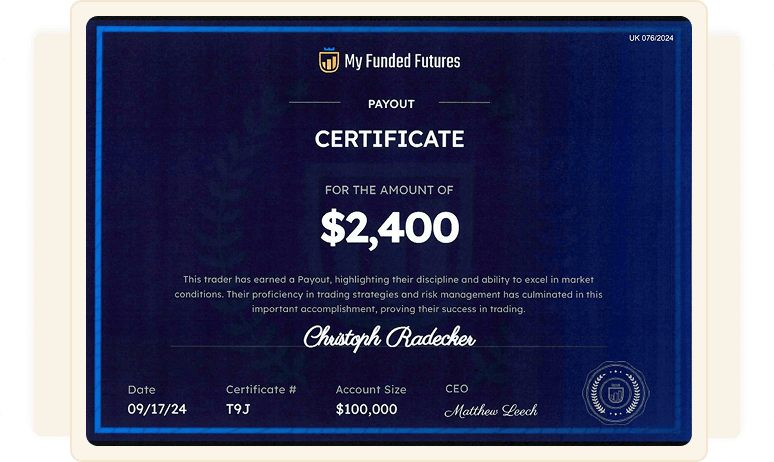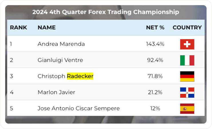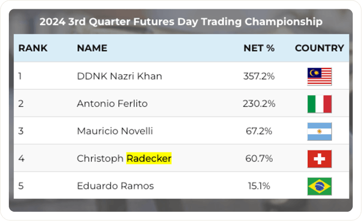 Christoph Radecker has traded professionally for more than 20 years, earning his edge through thousands of hours in live markets and consistent five-figure payouts across major firms.