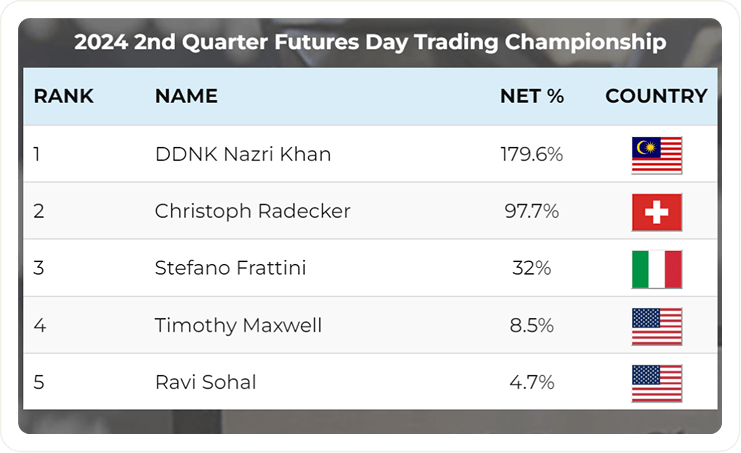 +97.3% in 90 days — 2nd place, World Cup Trading Championship (Futures), 2022